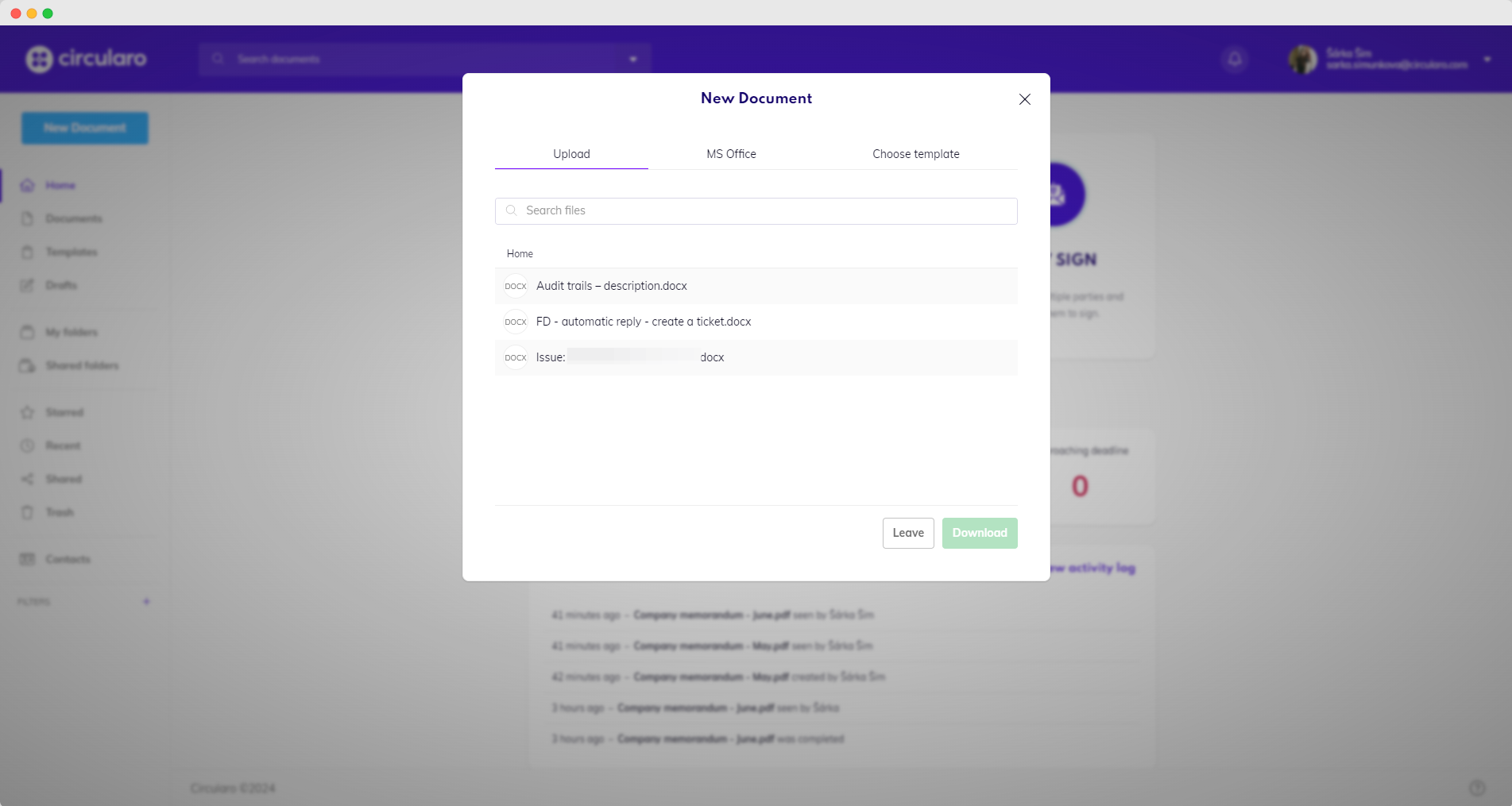 بعد أن تقوم بتسجيل الدخول بنجاح، اختر المستندات التي ترغب في رفعها إلى Circularo.
