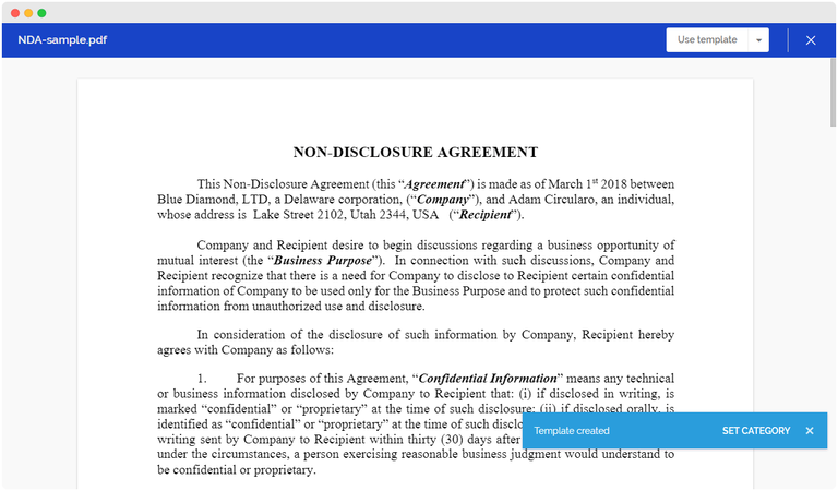 يمكن أيضًا حفظ مستندات Word كقوالب. وعلى الرغم من أنه يتم تحويل كل مستند إلى PDF عند بدء عملية التوقيع، فإن الميزة الرئيسية لقوالب MS Word هي أنه، على عكس ملفات PDF، يمكن تعديل محتواها قبل استخدام القالب.
