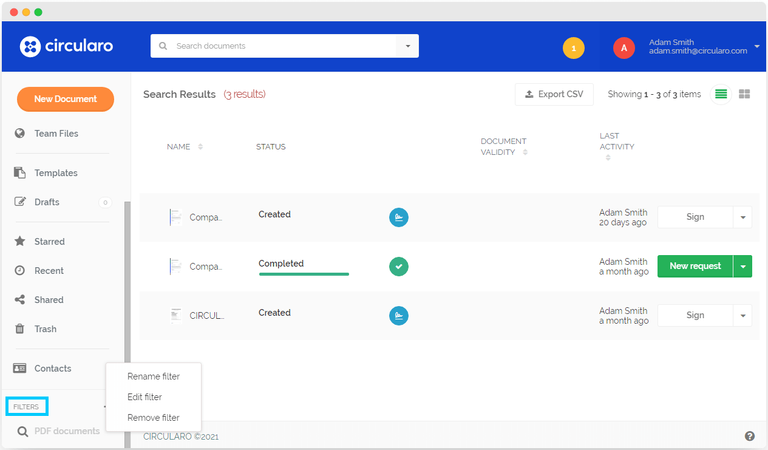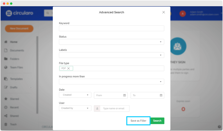 بمجرد إضافة المرشح، يصبح البحث عن المستندات بناءً على تلك المعايير المحددة سهلاً وسريعًا، حيث يتم عرض النتائج بمجرد النقر على اسم المرشح.