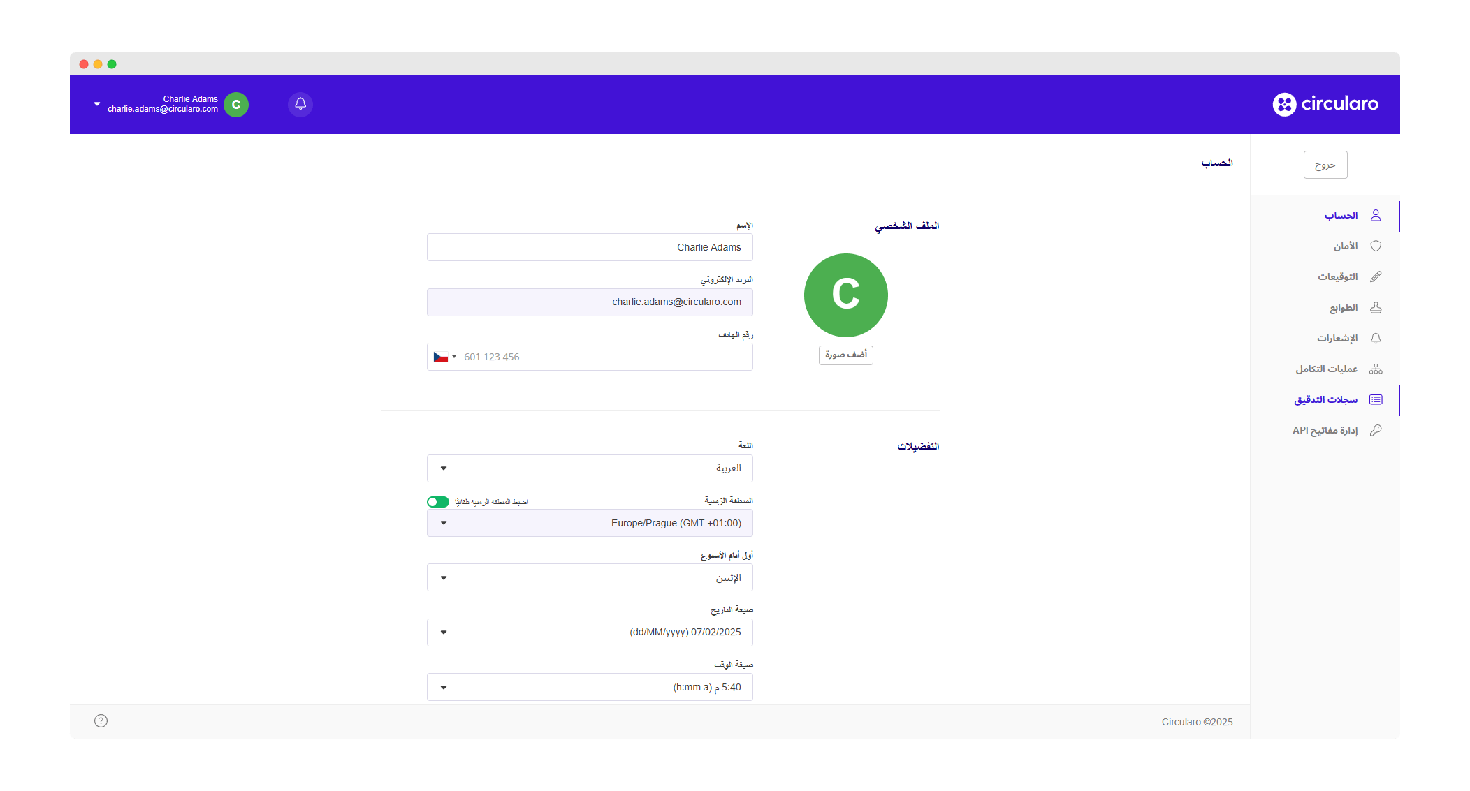 كل هذه الإعدادات اختيارية ويمكن إجراؤها في أي وقت خلال استخدام Circularo، ومع ذلك، فإن حفظ إعداداتك الافتراضية منذ البداية سيجعل تجربة التوقيع الإلكتروني الخاصة بك أسهل وأكثر راحة.