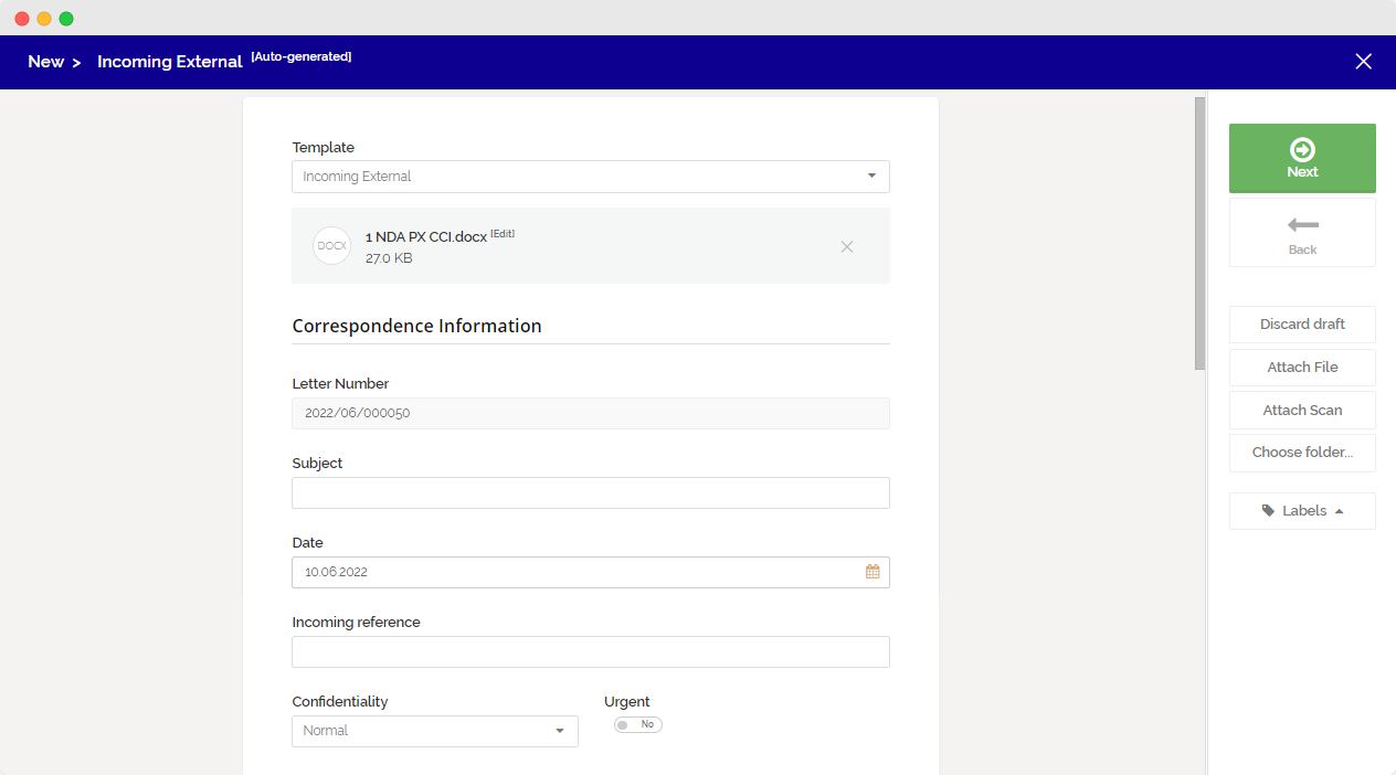 Custom correspondence form example