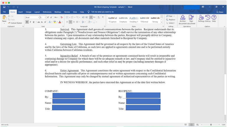 Circularo supports MS Word dynamic eSigning templates using simple JSON notation embedded in standard MS Word shapes tools. The advantage of this approach is that there are many options for how your Circularo signature and other fields can look like and behave, as you can change the style, size, colour, shape, alignment and many other standard shape object properties in MS Word.