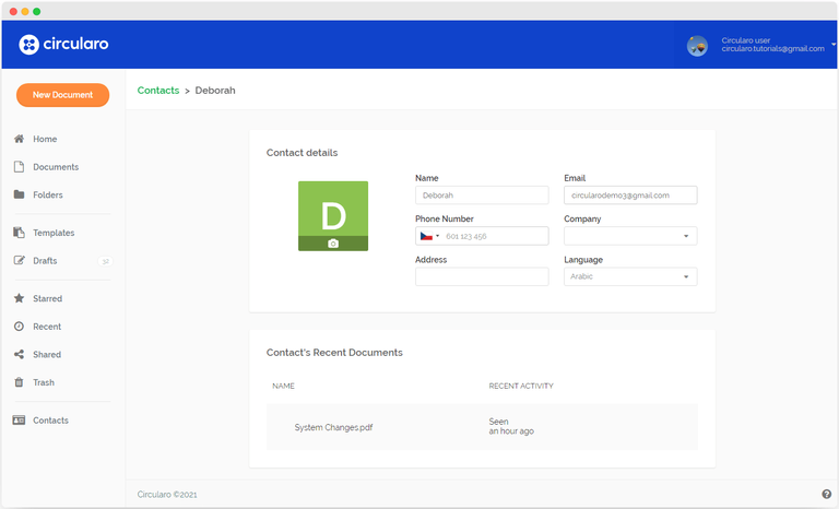 All documents shared with a particular external recipient can be also found in your Contacts under their contact details.