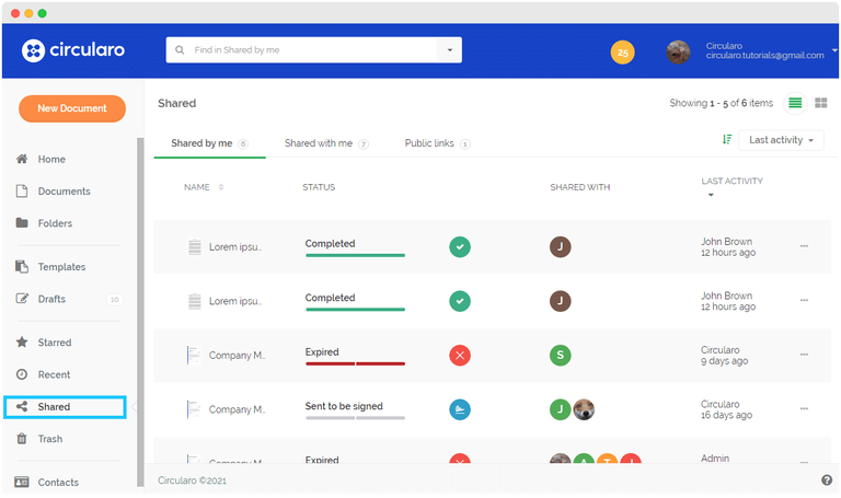 Shared by me - All documents you’ve shared with internal or external recipients.